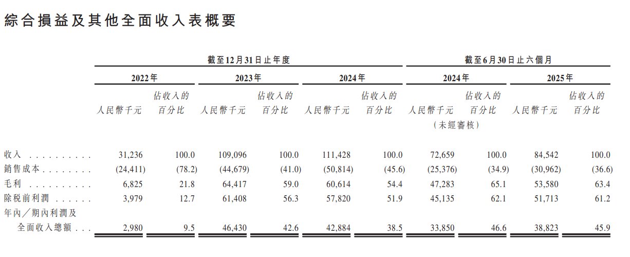 截至2022年度、2023年度、2024年度及2025年上半年,瘦西湖文旅实现收入分别为3123.6万元、1.09亿元、1.11亿元以及8454.2万元,于2022年至2024年的复合年增长率约为89.0%;同期,瘦西湖文旅实现年内/期内利润为298万元、4643万元、4288.4万元以及3882.3万元。