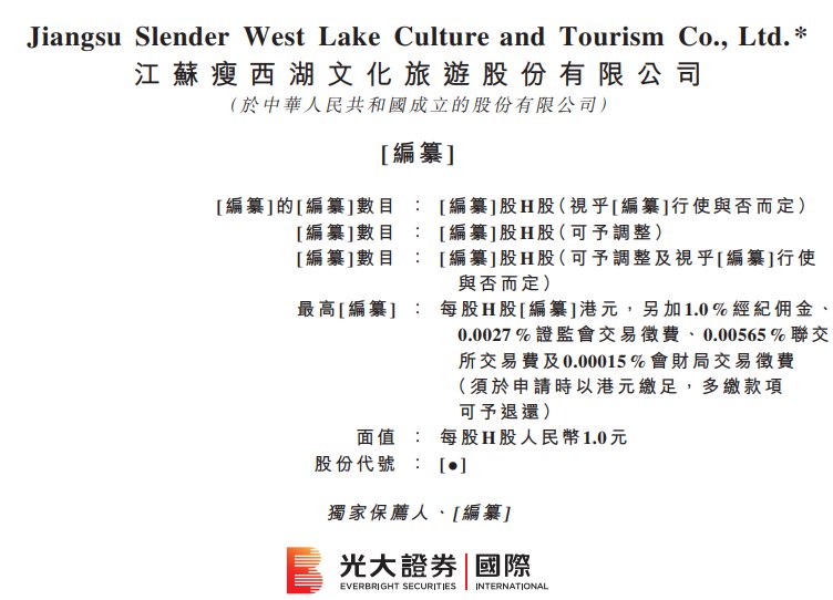 据港交所9月26日披露,江苏瘦西湖文化旅游股份有限公司(简称:瘦西湖文旅)向港交所主板提交上市申请书,光大证券国际为独家保荐人。